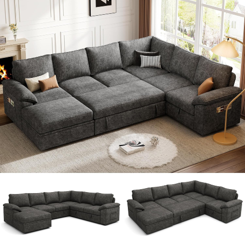 108 Inch Sectional Sleeper Sofa with Pull Out Bed
